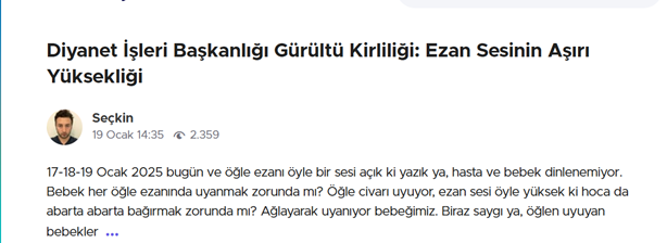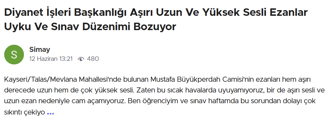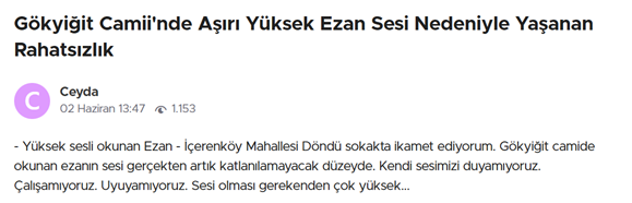 Yani kısacası bu küçük örnekler Türkiye'de ki ezan sesi rahatsızlığının milyonlarca kişide meydana geldiğini açıklayan bazı örneklerdir...
