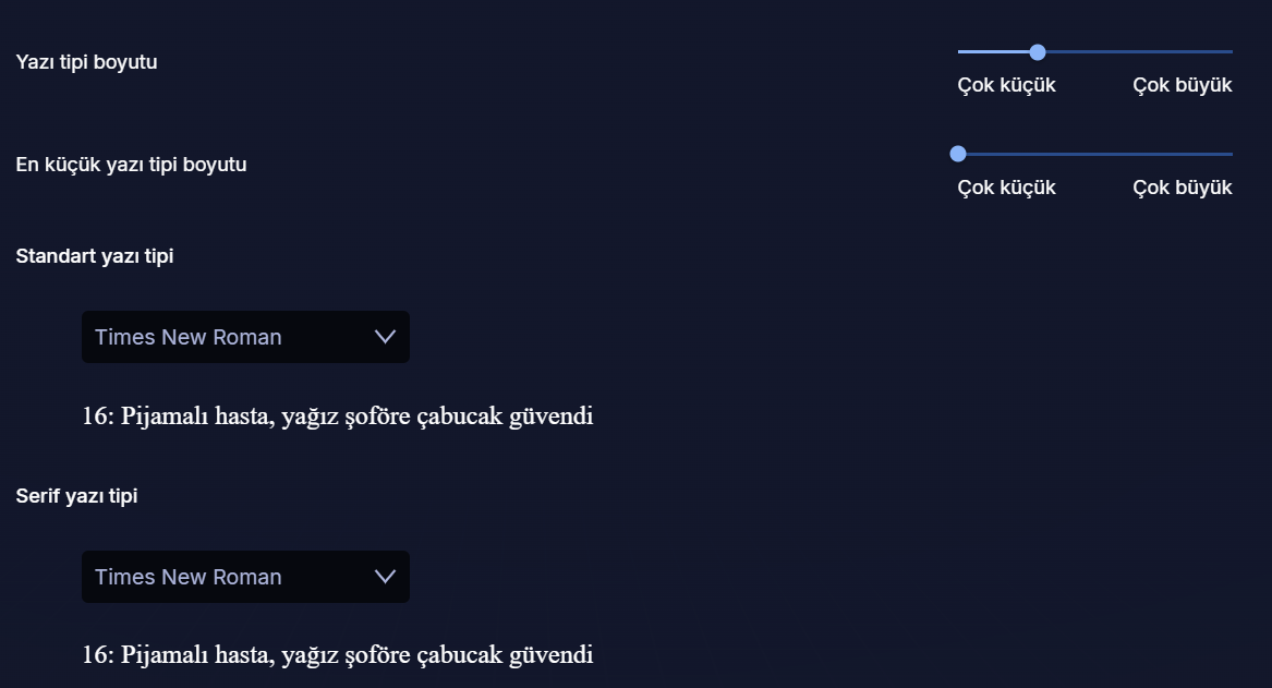 Birde tatlım şunu da eklemek istiyorum, yazı stilleri ile ilgili ayarlarda önemli ve bu konuda Opera'nın kendi standart ayarlarına dokunmamanızı öneriyorum, yoksa bu okuduğunuz yazının stili değişir ve buda tasarım açısından bizim için sorunlu...
