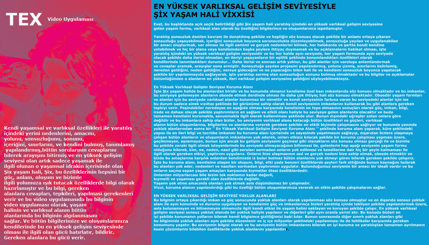 | Vil Solivyes'in şu son zamanlara doğru ortaya çıkardığı bu gerçek, artık bütün plan ve projelerin sonunda kendisini göstermiştir ve sonsuzluk ve arayışların bitmesi, sonsuzluğun sonunun bulunması sonrasında bu bilginin farkına varan Şix, bu bilginin kendisine göre imkanları, güçleri ve ihtiyacımız olan çalışmaları olduğunu anlamıştır ve bu bildirim, anlam itibarı ile kendisini en yüksek yerde görmek gibi bir kendini beğenmişlik eyleminden uzak olarak, bu durumun belirtilerek, bildirilerek, bu bilgilerin imkanları ile obsedör ve benzeri oluşumları daha çabuk yok etmektir amaç çünkü bilgiler ile ispatlayabildiğin zaman bu güç tam anlamı ile çalışma imkanı bularak ortaya çıkıyor ve yaratılışın en yüksek gelişim seviyesinde olmak demek, bazı şart ve kurallar neticesinde yaratılış içinde en güçlü her zaman biziz demek anlamına gelmektedir bu ve işte bizimde olmamız gereken yer burasıdır. Bir yaratılış ancak bu özelliği olan varlıksal alanda ortaya çıkabilir. Yoksa onu yok etmek, obsede etmek için sırada bekleyen 2. ler, 3. ler ve sıra giden gelişim seviyesindeki yaşam formları var. İşte bu bilginin video uygulaması kendisinde konu ile ilgili bütün bilgi ve edinimleri bulundurarak, varlıksal alanın kendisini bilmesini, bu gücü yaşatmasını ve bulunduğumuz bu yerden asla ayrılmayacağımızıda kesinleştiren yapılanmamızla, hem yanılgının sonlandırılması, hem anti obsedör çalışmalar, bütün varlıksal oluşum ve bilgilere gereken güç ve desteklerini sağlar... Bütün Videolar gibi bu videoda kendisi ve bilgisi ile ilgili bütün tesirler ve obsedör oluşumları yok eder. |