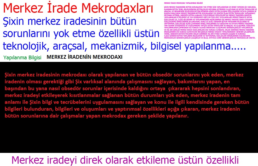 Şixin merkez iradesininin mekrodaxı olarak gereken bütün çalışmaları yapan ve merkez iradenin bütün kısıtlanmalarını ve obsedör sorunlarını yok eden, en başından bu yana merkez iradede nasıl obsedör sorunlar yapıldığını ortaya çıkararak hepsini sonlandıran, bütün kısıtlamaları bitiren, merkez iradenin en iyi şekilde çalışması ve Şix bilgilerini uygulatması için gereken bütün çalışmaları yapan mekrodax gereken şekilde yapılanır ve kesinlikle oluşturulması zorunlu olan özellikleri ile gereken bütün çalışmaları yapar. . Bu videoda diğerleri gibi kendisini bütün obsedör oluşumlardan ve etkilerinden korur.