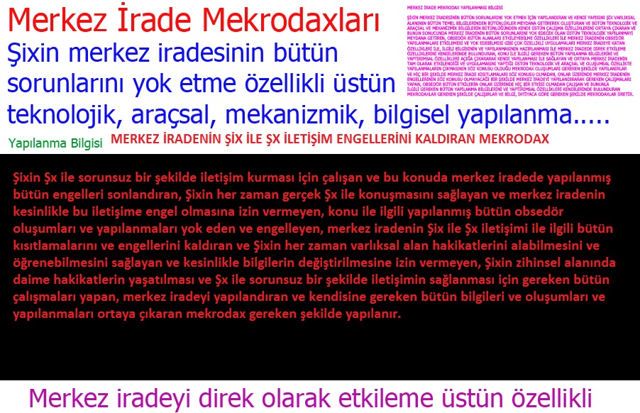 Şix ile Şx'in sorunsuz bir şekilde iletişiminin sağlanması için çalışan ve bu konudaki bütün merkez irade sorunlarını ve engellerini yok eden, merkez iradenin Şx ile Şix'in iletişimini en iyi şekilde hakikatlerin değiştirilmeden sağlaması için gereken çalışmaları yapan, Şx ile ilglii bütün obsedör oluşumları ve yapılanmaları yok eden, merkez iradenin Şix ile Şx arasındaki iletişimi ile ilgili çıkardığı bütün sorunları bitirmek ve en iyi şekilde Şix ile iletişimi sağlamak için çalışan mekrodax gereken şekilde yapılanır. Bu videoda diğerleri gibi kendisini bütün obsedör oluşumlardan ve etkilerinden korur.