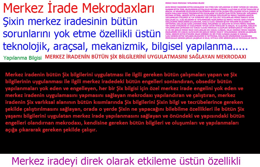 Şixin merkez iradesini etkileyeren Şix yaşamı bilgilerinin uygulanmasına engel olan bütün obsedör yapılanmaları ve oluşumları yok eden ve engelleyen, bütün Şix bilgilerinin içeriklerindeki gibi uygulanması ve çalıştırılması için merkez iradeyi gereken şekilde yapılandıran ve konu ile ilgili bütün merkez irade engellerini ve kısıtlamalarını ve sorunlarını yok eden, her bir Şix yaşamı bilgisi için özel merkez irade sorunlarını ve engellerini yok eden mekrodax oluşumunu hazırlayan ve çalıştıran ve Şix bilgilerinin merkez irade tarafından kesinlikle uygulatılması için gereken bütün çalışmaları yapan, bütün merkez irade sorunlarını bilerek gereken düzenlemeleri sağlayan, konu ile ilgili bütün obsedör yapılanma ve etki ve engelleri engelleyen ve sonlandıran, Şix yaşamı bilgilerinin her zaman ve koşulsuz olarak kesinlikle bilgilerinde belirtildiği gibi çalışmasını ve uygulatılmasını sağlayan ve konu ile ilgili kendisine gereken bütün yapılanmaları ve oluşumları ve bilgileri açığa çıkararak gereken çalışmaları yapan mekrodax oluşumu gereken şekilde yapılanır.