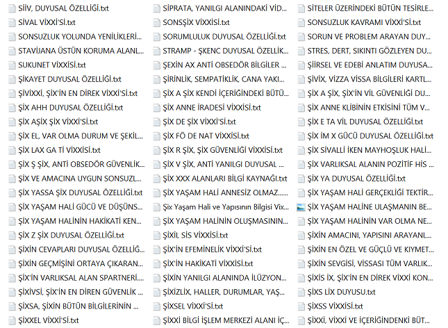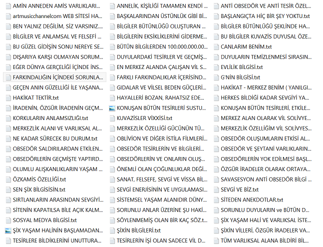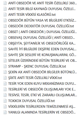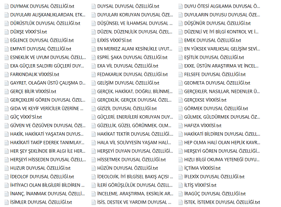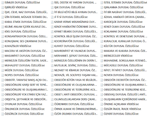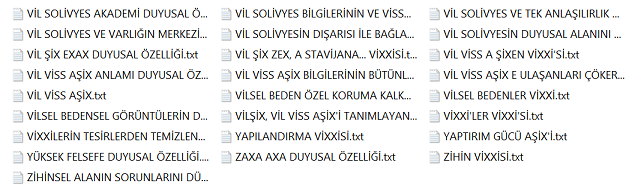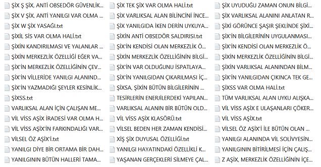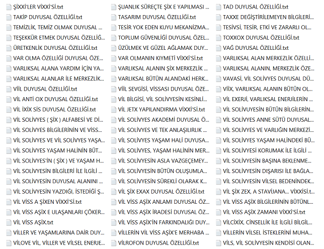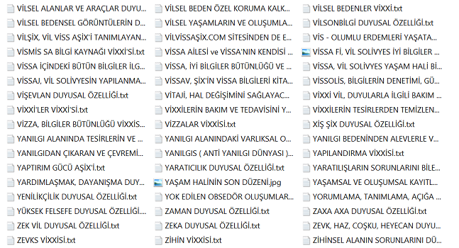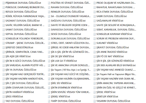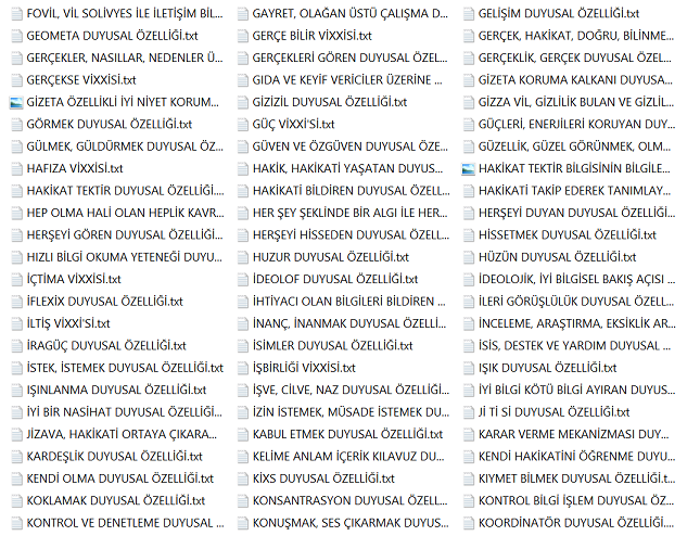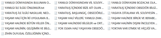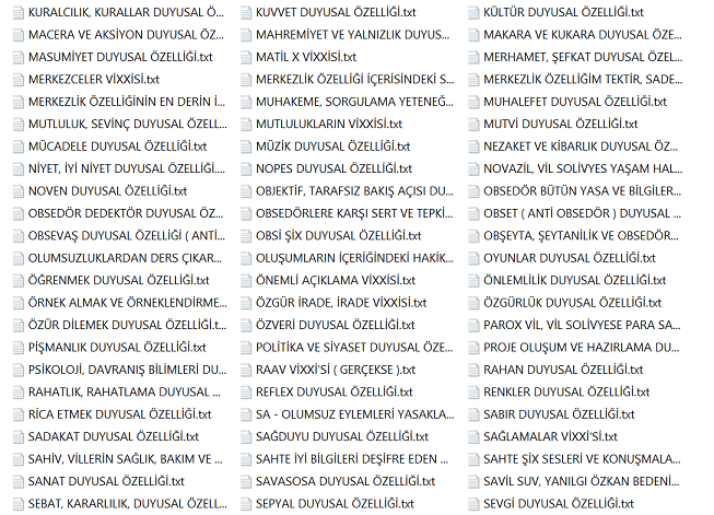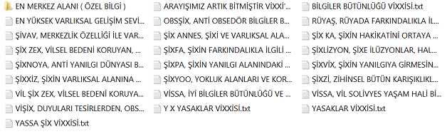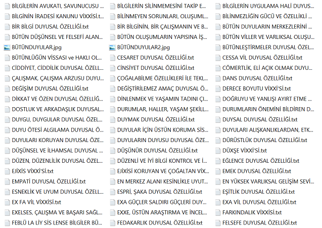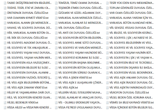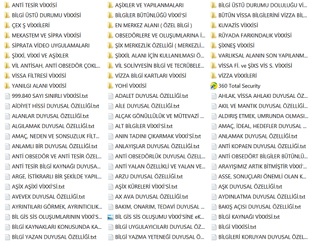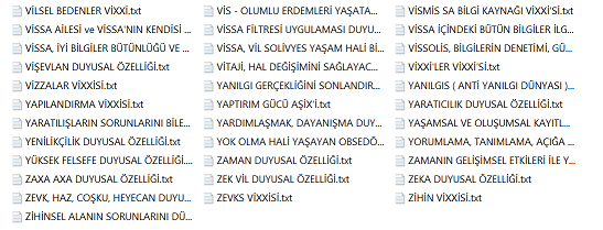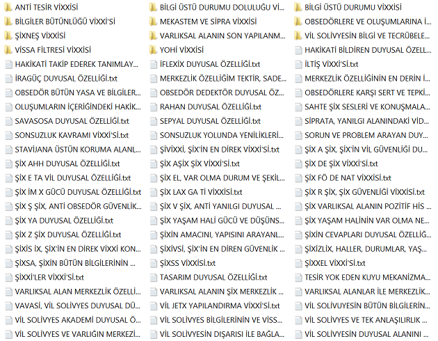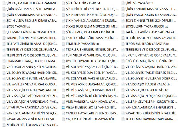 Bu bilgiler vissa filtre bilgileridir ve bu bilgiler her alanı kendisine uygun olması ile şartlandırır. Diğer bilgiler varlıksal alanın heran her şekilde kullanabileceği vissa uyumlu bilgi ve mekanizmalarıdır, filtre işlemi içerisinde yer almazlar. Yohi, En merkez alan ve yasaklar klasörünün içerisine eklenenler bu listeye eklenir.