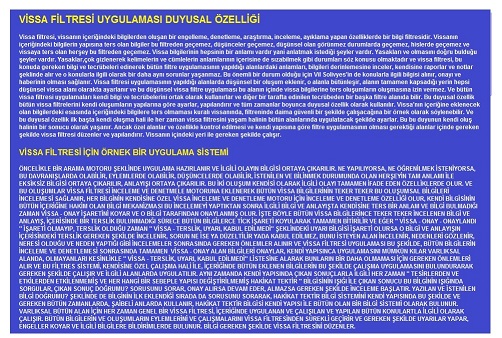 Vissa Filtre Bilgileri Bütün Yeni eklenen Oluşumlar ve Bilgiler Bu bilgilerin Filtresinden Geçmek Zorundadır