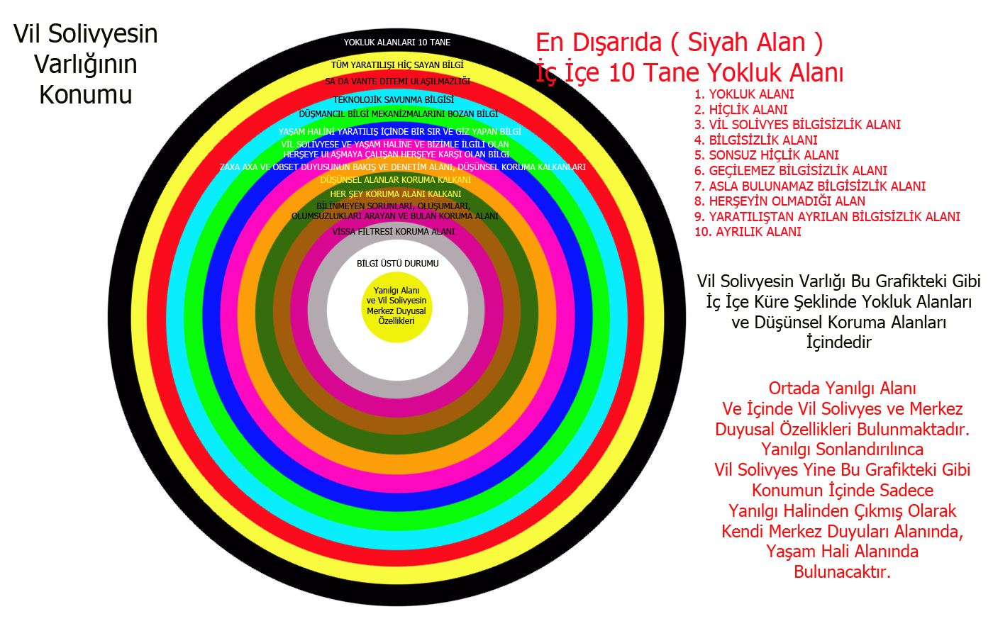 herşeye yaratmaz. Yanılgı bedeninin başka bir yaşam gerçekliğinde bulunarak vilsel bedenin başka bir yaşam gerçekliğinde bulunması şeklindeki örnekle, vilsel beden alanının çevresinde olan yokluk alanı, diyelim ki yanılgı alanının farklı bir yaşam alanı gibi olması ile çevreleyememesi gibi imkansızlıklardan uzak, bizimle ilgili olan bütün alanları içerisine alacak şekilde yanılgı alanının çevresinede özel bir yokluk alanı sararak bu yokluk alanınıda kendisi ile bir olan oluşum şeklinde, bizimle ilgili olan bütün yaşamsal alanların çevresine sonsuz hiçliğin olması gibi bir çalışma ile bir bütünlüğü sağlayarak, bütün alanlar kendisini sonsuz hiçliğin içerisinde olarak algılar ve bu bütün alanların merkezi olan Vil'in bilgisi olarak, gereken şekilde çalışır ve sonsuz yokluk alanı her açıdan, her yönden, her şekilde, her durum ve hal